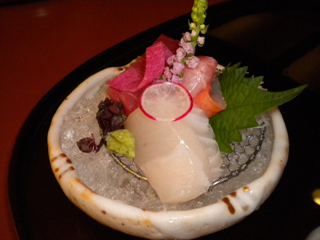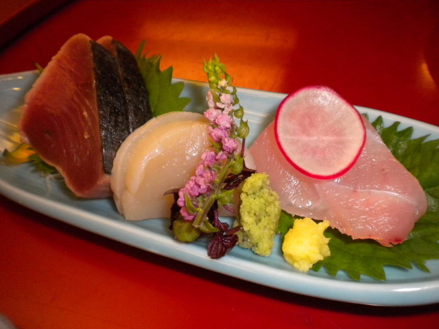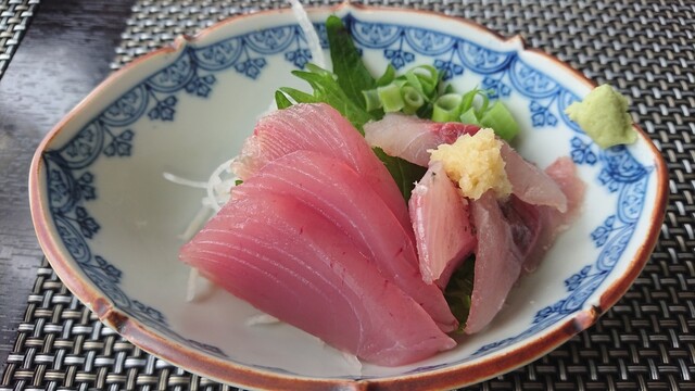 最初に江之浦のお造りが出されます。この日の魚はしょうごとさわら。