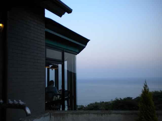 この日は沖に大型客船が白い船体を休めていました。曇り気味なのがちょっと残念。