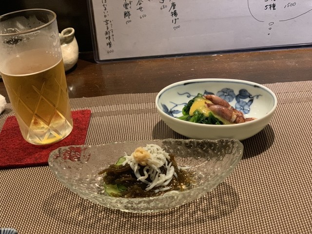 つきだしは、2品の小鉢料理。