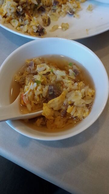 食べると口の中に玉子の甘みが広がる。次に叉焼や蟹の香が鼻を抜ける。