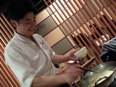 雑炊は、いったん、鍋を厨房に戻して、