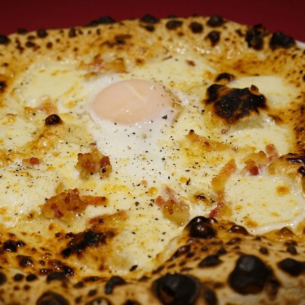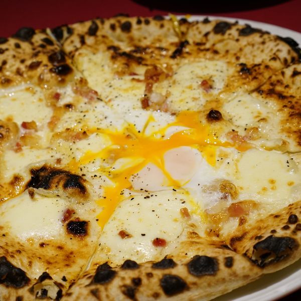 ビスマルクピザは、中央に半熟の目玉焼きを乗せたピザ。