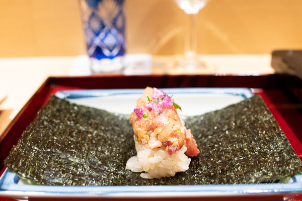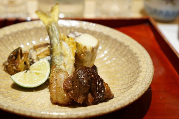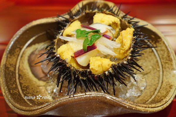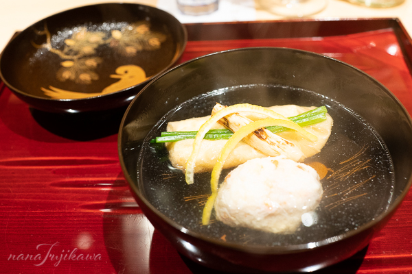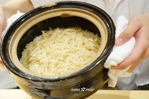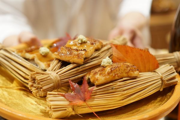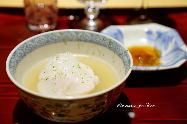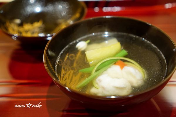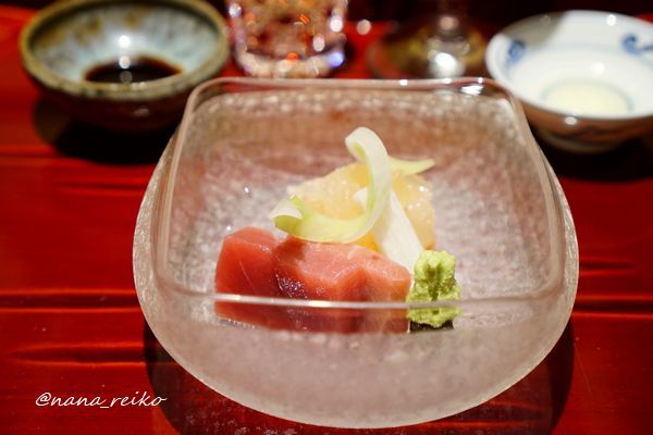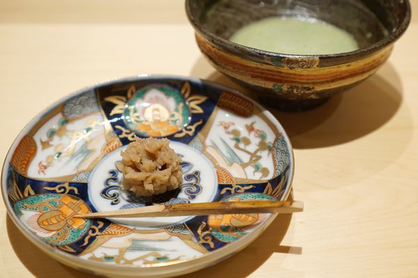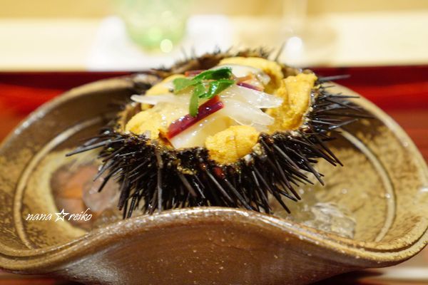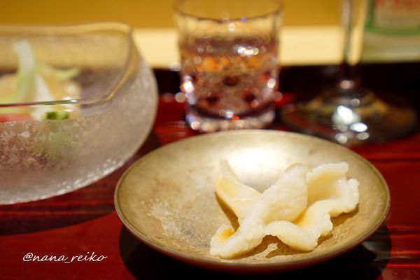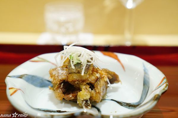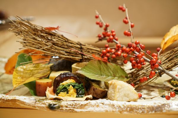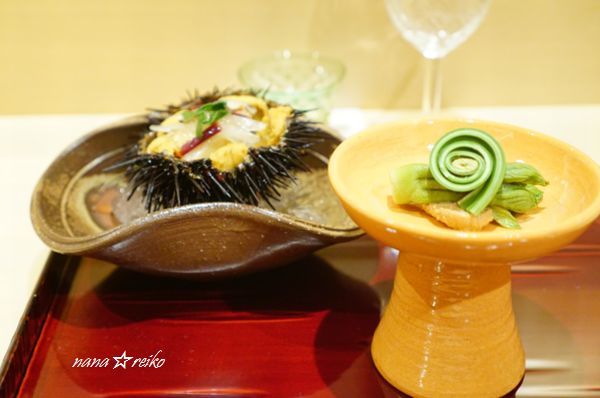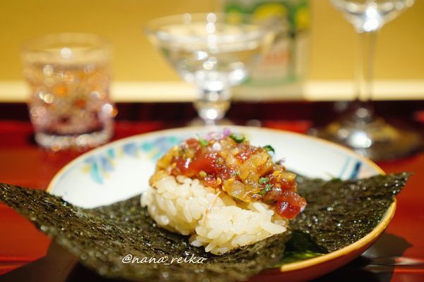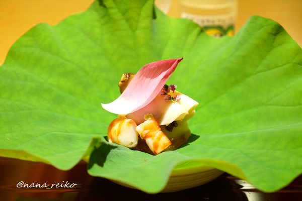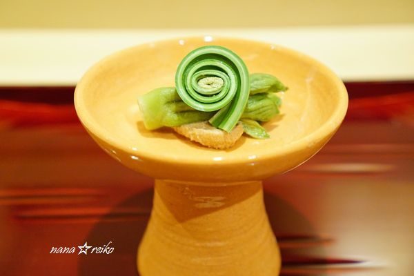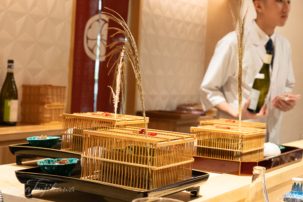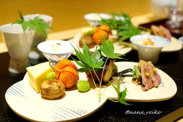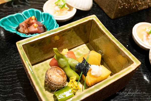 お料理で『八寸』が登場した時の店内のざわめき。八寸は、季節を写す良さがあり、故郷、滋賀県湖南市を描いたひと皿に。私は二人で一台の八寸で、お皿が長くて豪華でしたが、ひとり一台の八寸もあり豪華でした。