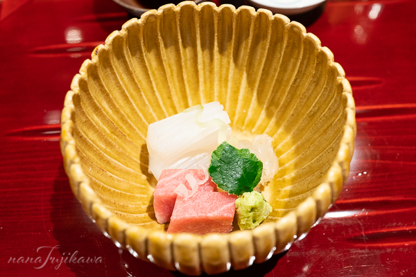 大間本鮪中トロ、明石の鯛、明石障泥烏賊、長崎河豚