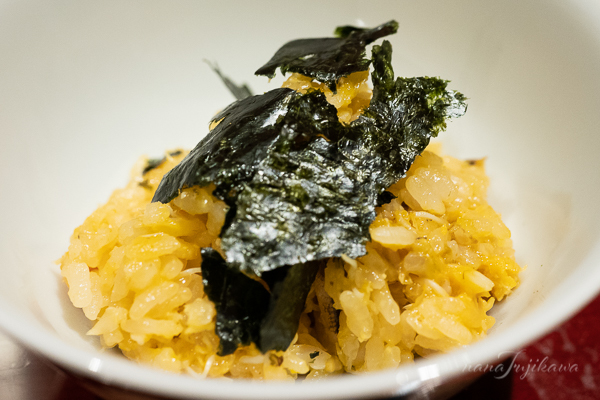 ◆毛ガニコロッケご飯、カニ味噌の入った玉子
