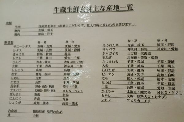野菜の産地もズラーッと貼ってあります。