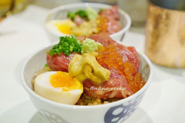 牛ご飯、普通盛りと小(別料金でウニ、イクラ乗せ)
