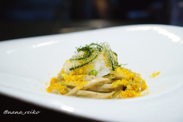 秋田・たかむら麺の冷静パスタ。白海老とからすみ