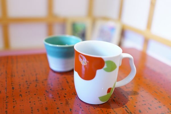 伝統的な和柄のカップから