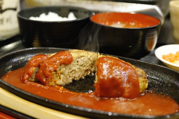A5ランクの黒毛和牛ハンバーグ定食、