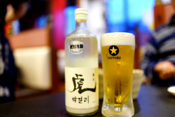 虎マッコリボトル 2808円、生ビール 594円