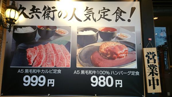 カルビ定食が999円という謳い文句が。