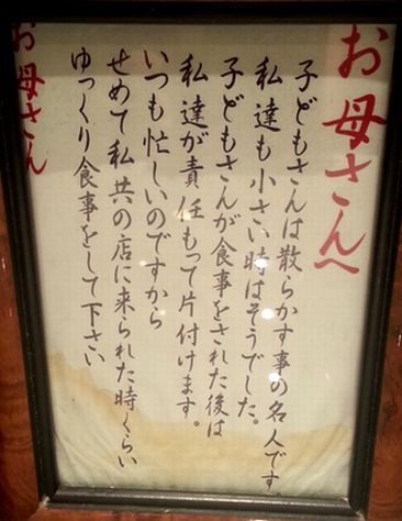 お化粧室の洗面台には、お母さんへのメッセージが貼られていて好感触。