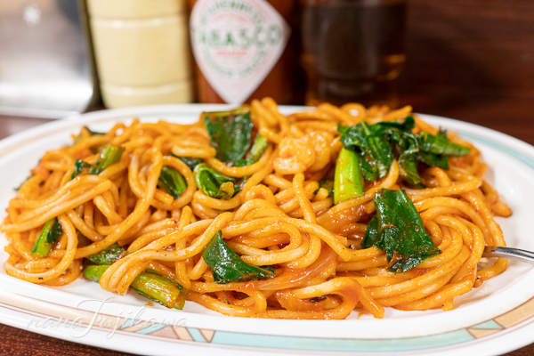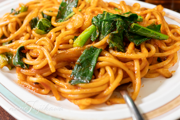 絵的にも赤い方がいいかなとナポリタンを。