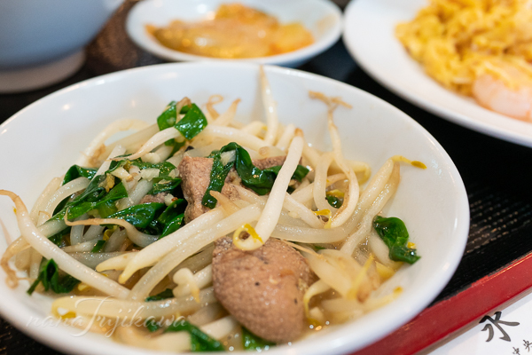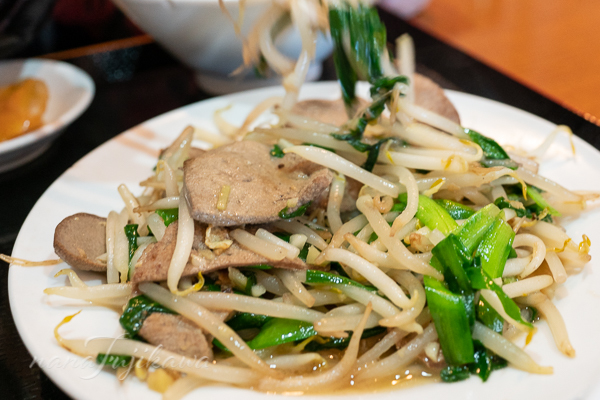 ニラレバ炒めが小皿で乗っていました。