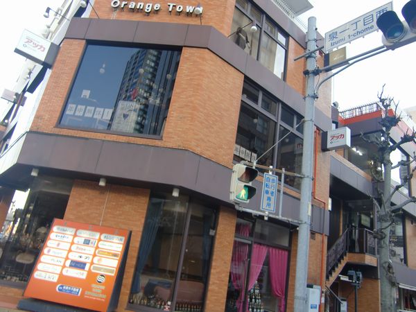 泉西一丁目交差点角に「オレンジタウン」というレンガのビルがあります。