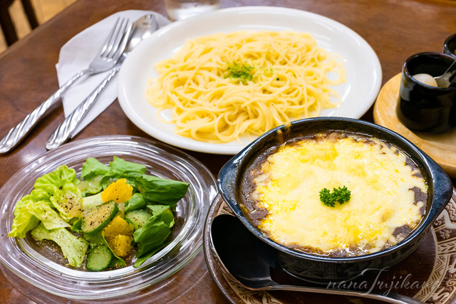 30年、変わらぬ値段の680円、一番人気カレリアン!カレーとドリアのミックスをスパゲッティで♪
