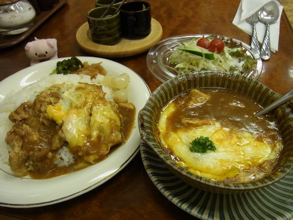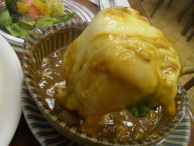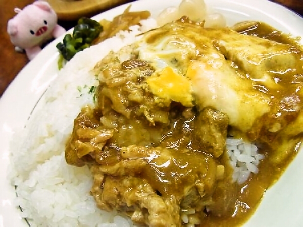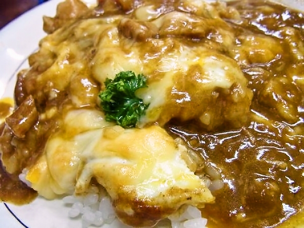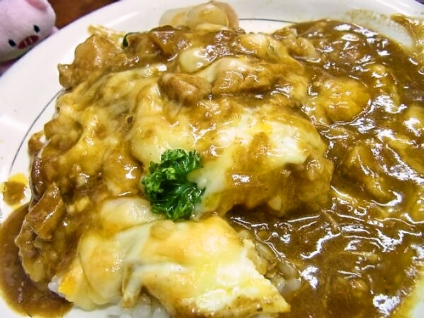 ポークカレーにナチュラルチーズと目玉焼入り。