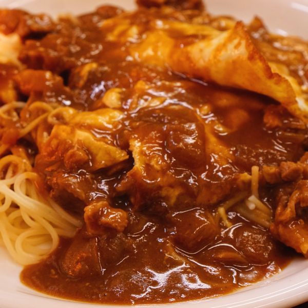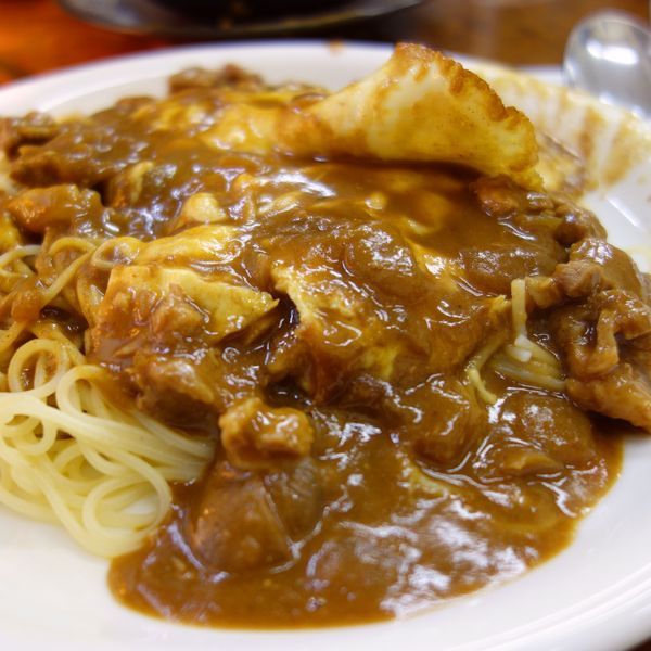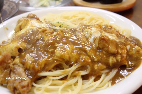 スパゲッティは細麺でカレーと絡んで美味しい♪