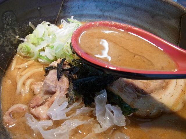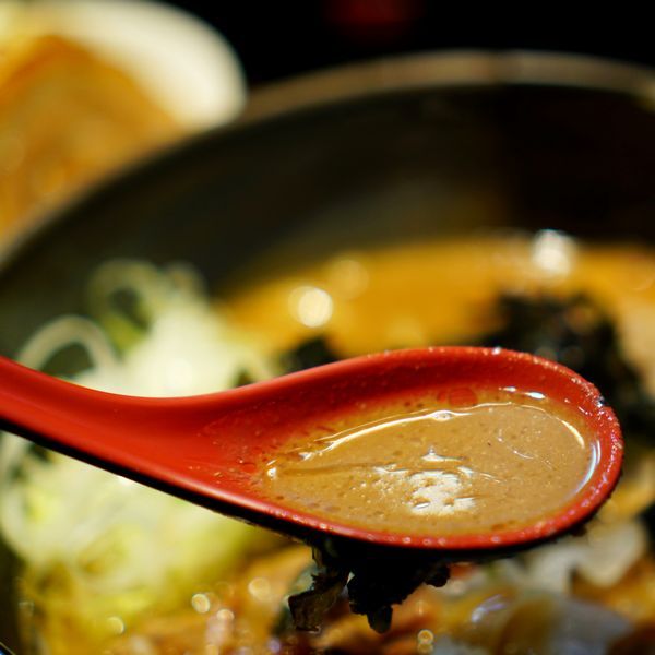 豚、鶏、魚介、野菜から作られるどろどろスープ。