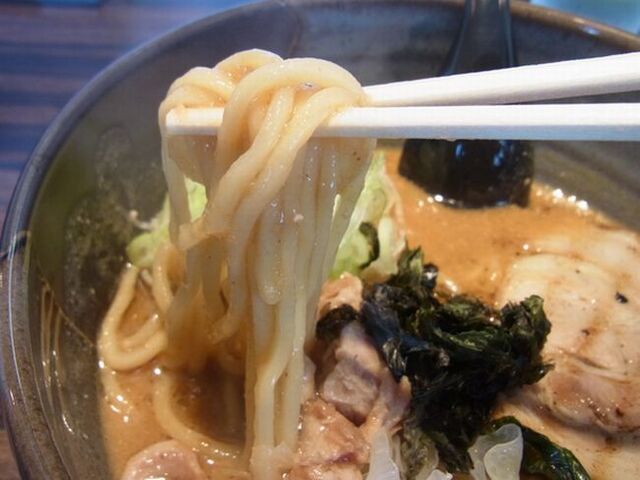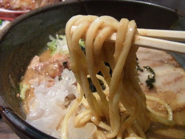麺は中太麺麺にどろりスープがからんで美味しい~(^^)