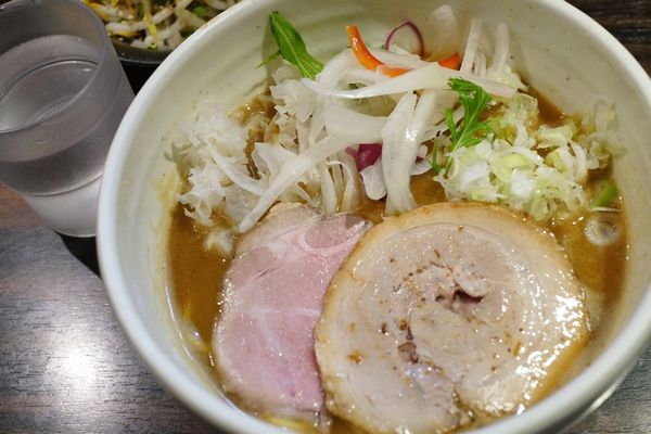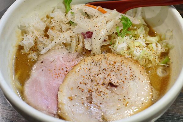 「鶏、豚、魚介、野菜の旨味を引き出したドロ系のスープ」