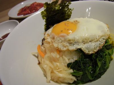 コムタンスープが付いていて、半分食べたらスープをかけて二度美味しい~!