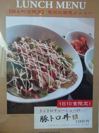 ランチメニュートントロチャーシューの豚トロ丼1000円も魅力で・・・