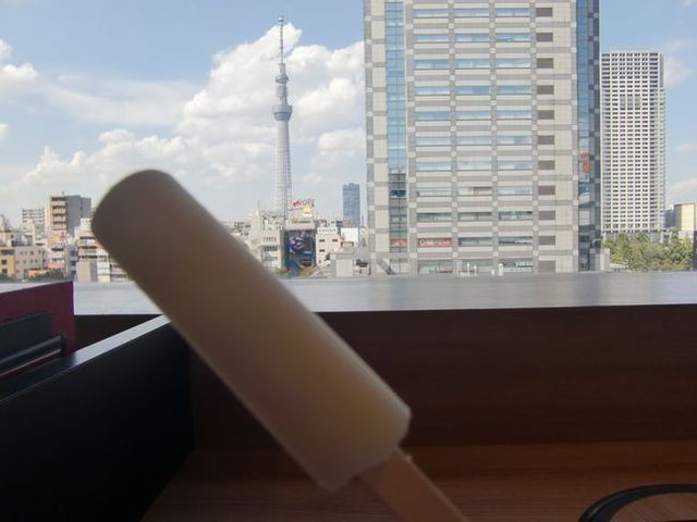 サービスでアイスキャンデーが出ますが、スカイツリーがくっきり!