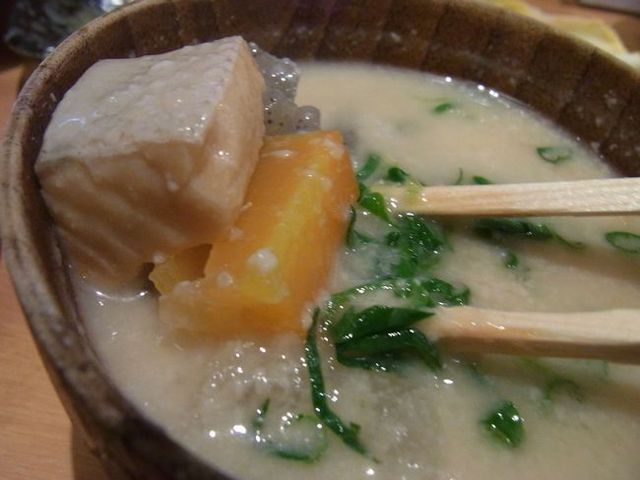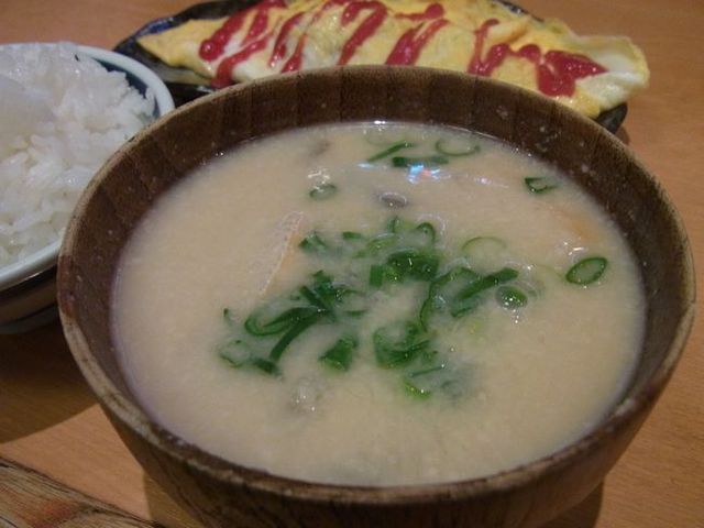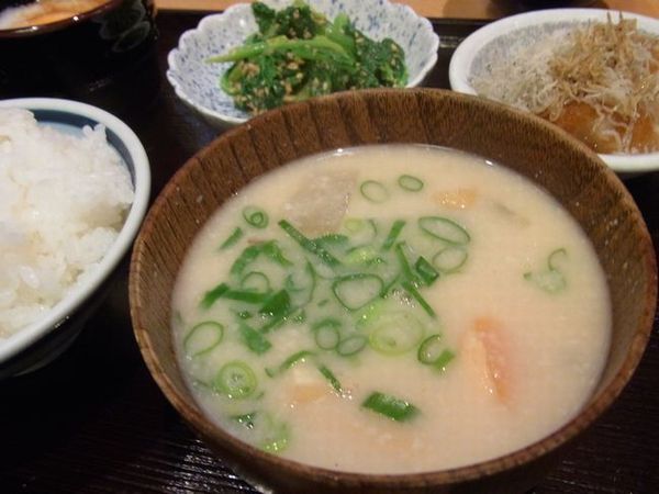 かす汁、豚汁は超熱々でとても美味しい♪