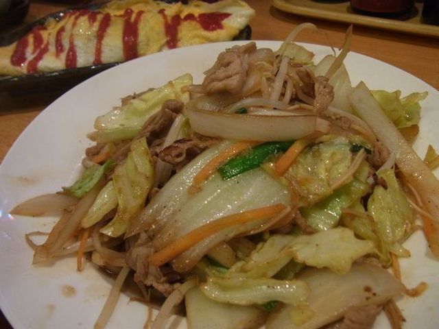 @野菜炒め 醤油と胡椒が効いて関西なのに濃い味で美味しい~♪