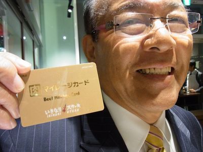 いきなりステーキでは『肉マイレージカード』があり、色々な特典があるようです。