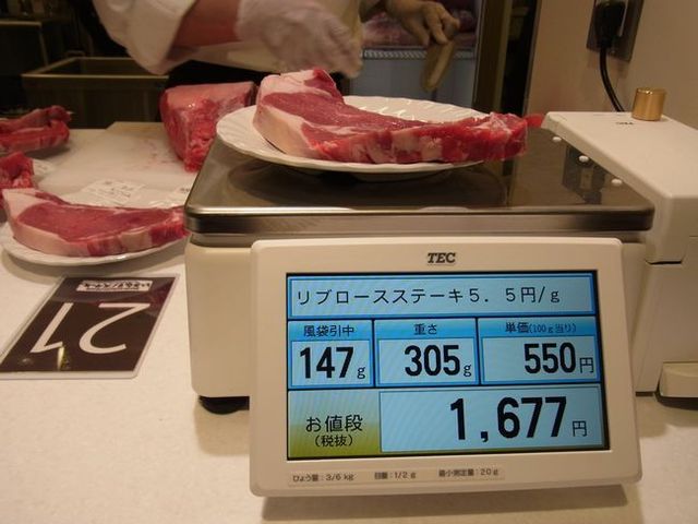 目の前でステーキをカットしてくれるのですが、300gちょいでカットしてくれます。スゴイ!