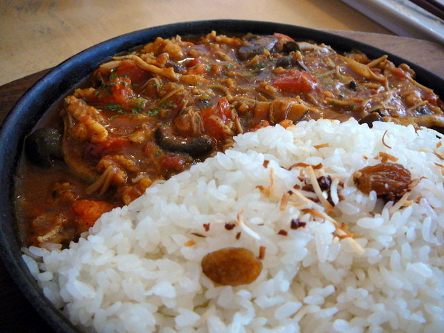 森のキノコカリーはラムカリーと比べるとだいぶマイルドだが妻は満足していたようだ。