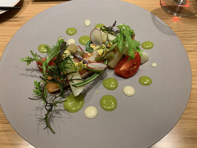 「サーモンとアスパラ」は燻製サーモンが特に美味しいなぁと。玉ねぎソースも印象的だった。