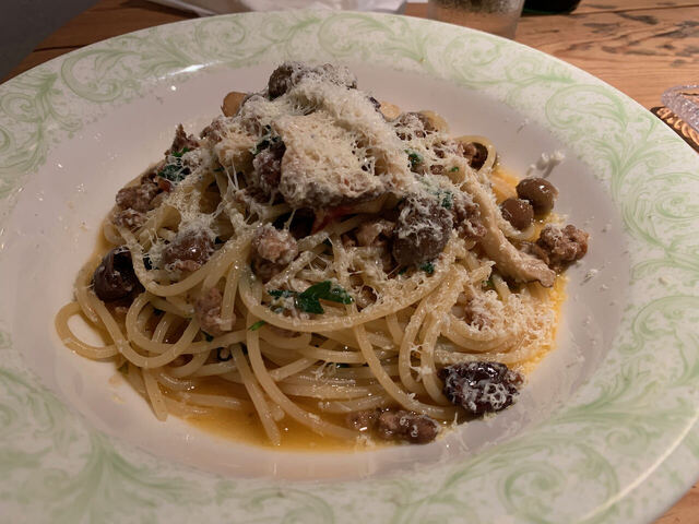 坊やはよほど妻が気に入ったのか早速ミニカーをもって遊びにきます。数分遊ぶといつの間にか別のテーブルで愛想振りまいています(^^;)。この日は満員で料理が供されるまで20分くらいだったと思いますが料理が来ると坊やはいつの間にか居なくなりました。お見事!