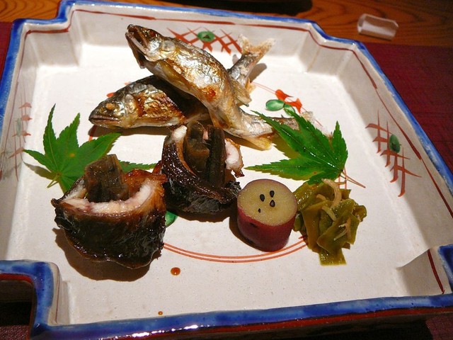 毎年いただいているハゼですが色々な食べ方があってとても美味しいですね〜今年は鮨をいただいたら驚きの美味しさでした。そして里芋の絶妙な美味しさには毎年感服しています。酔っ払いの蟹と貝も堪らない旨さであるし此処で食べる「ひがしもの」が最高だと思います。あとは秋を感じる朴葉焼きの香りも堪りません。