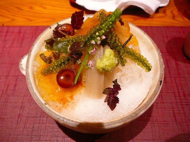 【鮑、銀杏、ササギ、みずの実、つるむらさき】◎ なにげに銀杏が美味しい