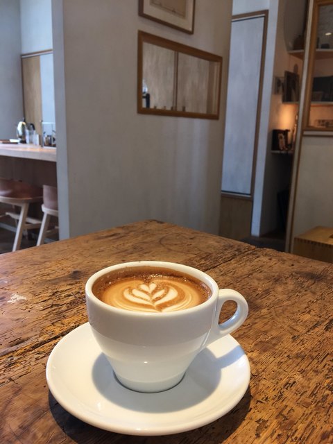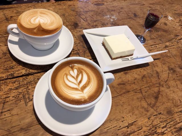 こちらはミルクの層はラテより厚くラテとカプチーノはその日の気分ですね。