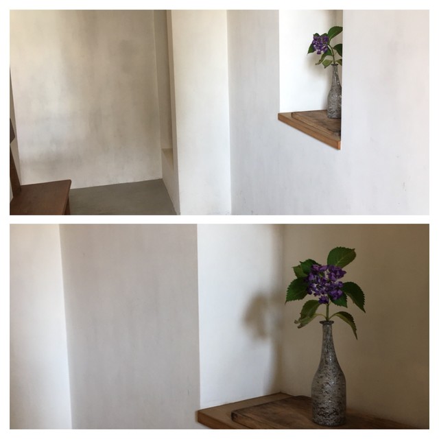 コンクリの壁に床材フローリングのシンプルなつくり、