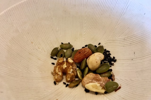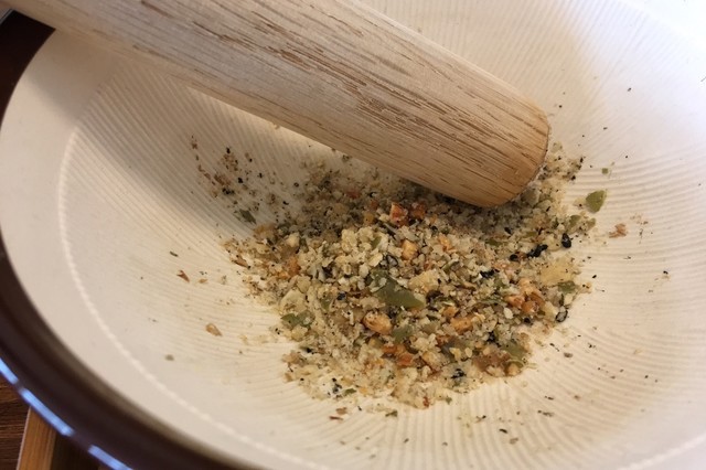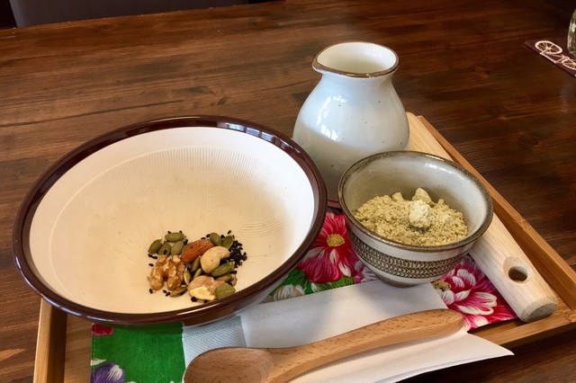 こちらでは別に、黒ごま・かぼちゃの種・カシューナッツ・アーモンド・胡桃をすり鉢で出されます。