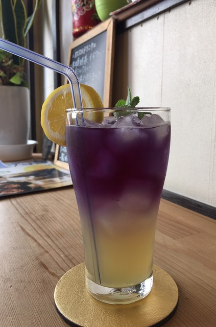 バタフライピーは家で飲んだことがありますがレモンの酸で青・紫・ピンクと色の変化する不思議なハーブ。