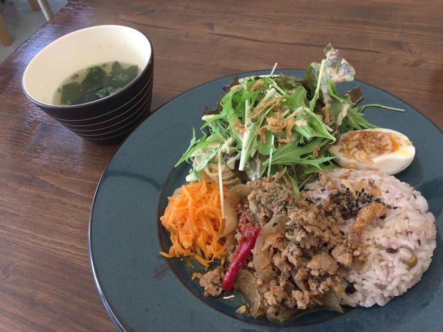 ガパオライス風 エスニック鶏そぼろご飯 スープ付き780円に台湾茶セットで980円