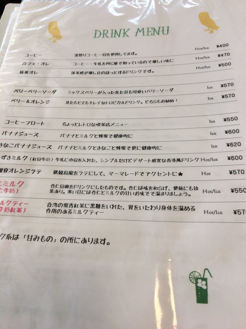 ドリンクメニュー