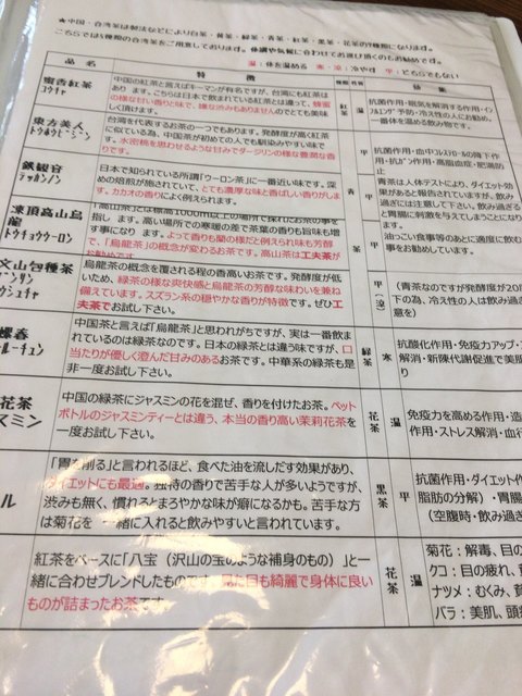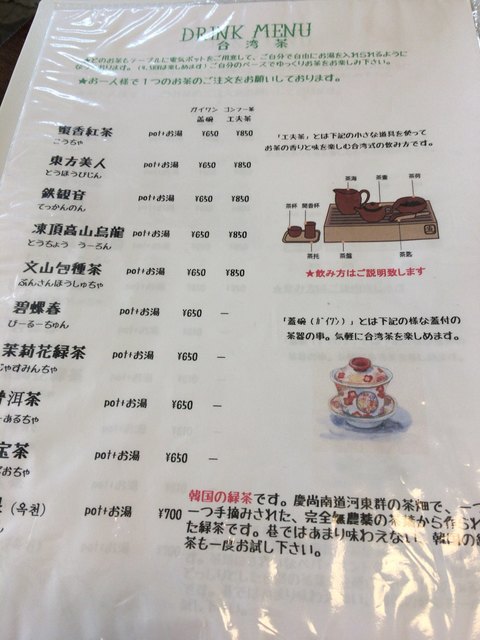 台湾茶メニュー