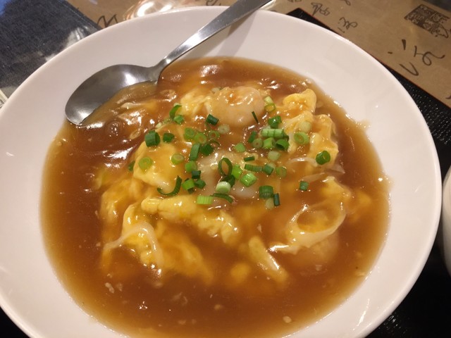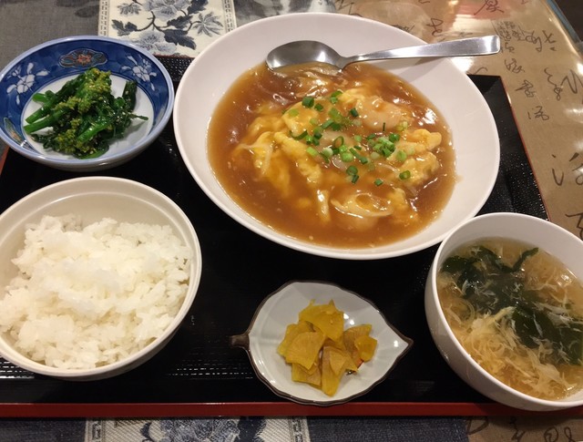 日替りのエビと玉子の炒め物は餡掛けで人気とおススメされましがそれも納得。