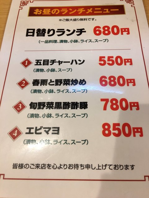 ランチメニューを拝見 税込
