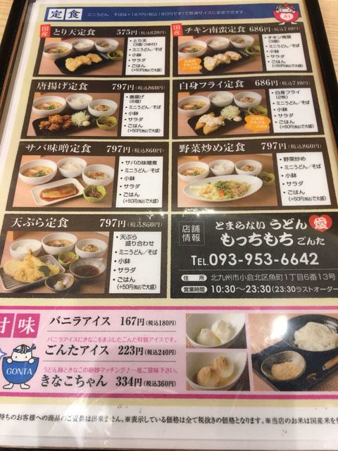 うどんや天ぷら・おでんなどの単品から手軽な定食もあります。