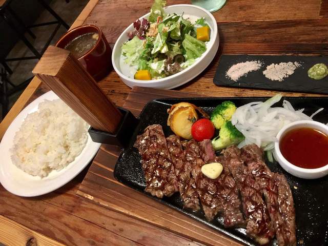 鉄板で熱々を提供で150gでしたがなかなかのボリューム。