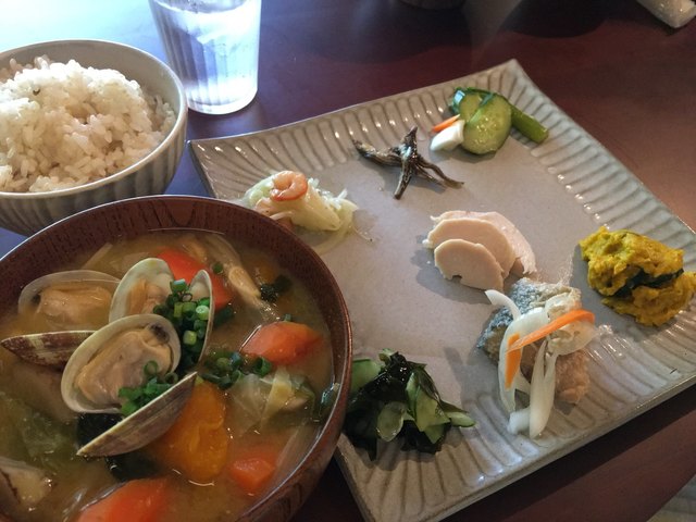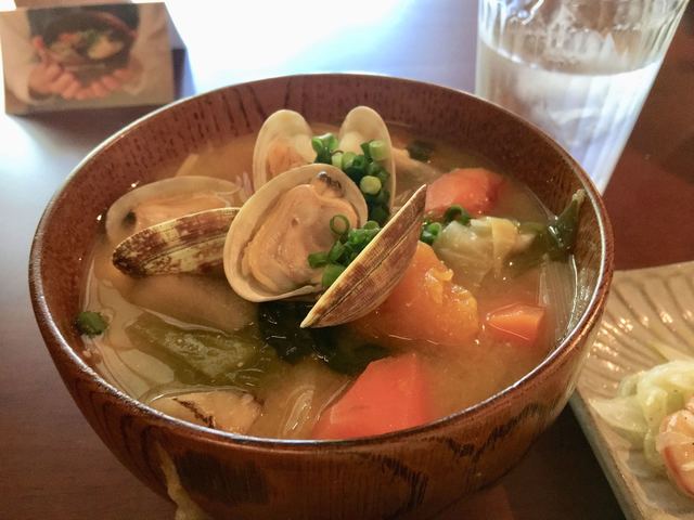 豚汁のような見ためですがお肉の代わりに浅利を使用、